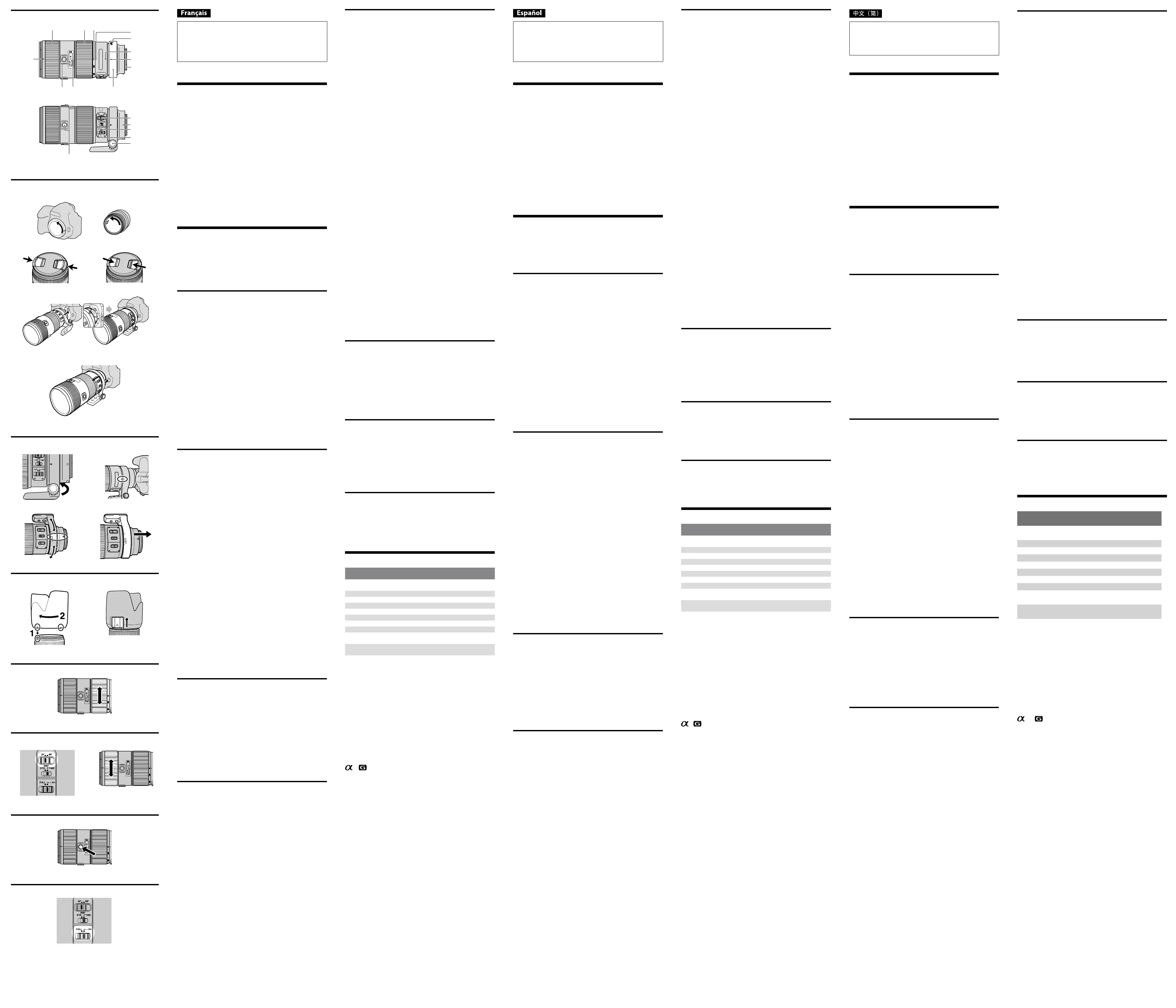 前的注意事项”中找到。务必在使用镜头前阅读以上两