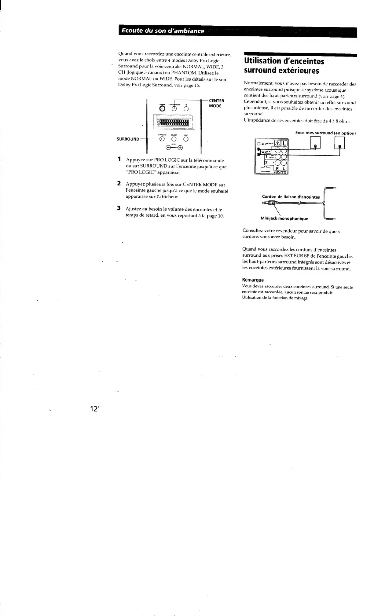 Sony SAVA-7 - Utilisation Denceintes Surround Extérieures