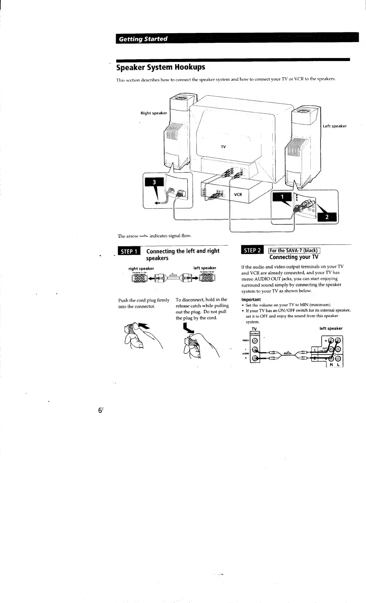 Sony SAVA-7 - Speaker System Hookups; Connecting Speakers; Connecting to TV