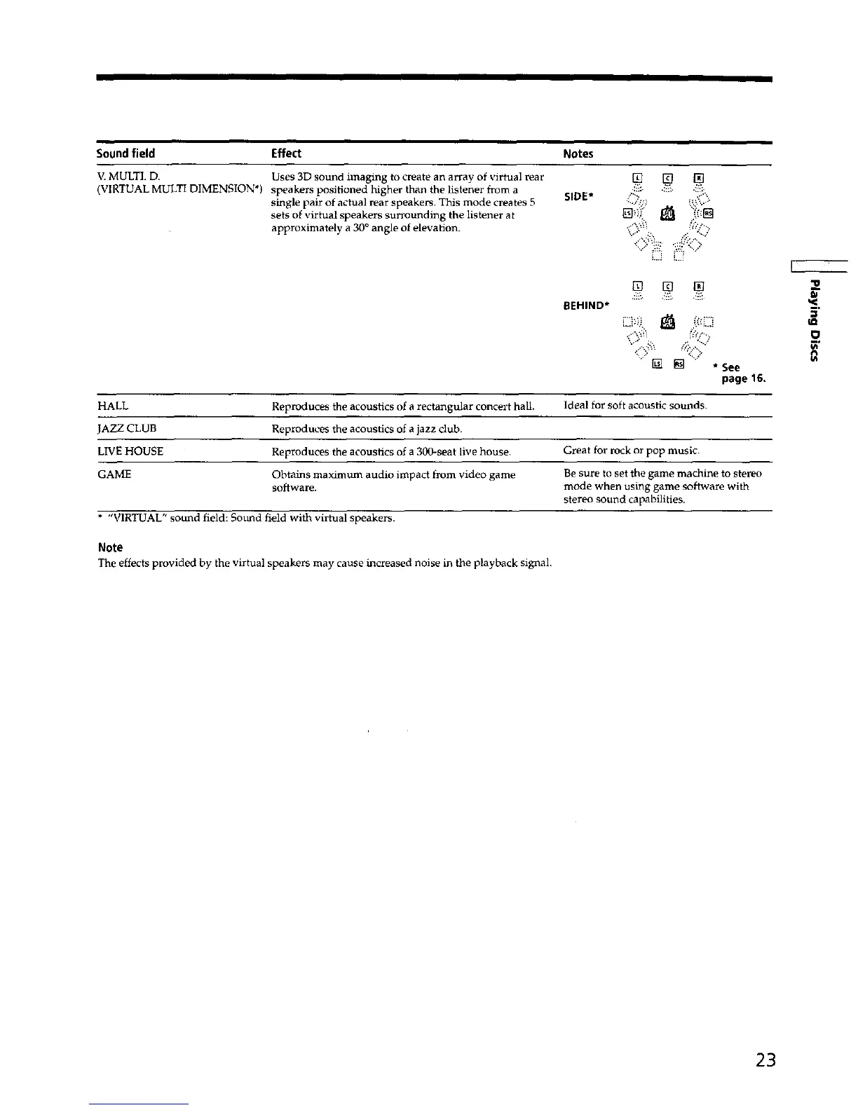 * "VIRTUAL" sound field: Sound field with virtual speakers.