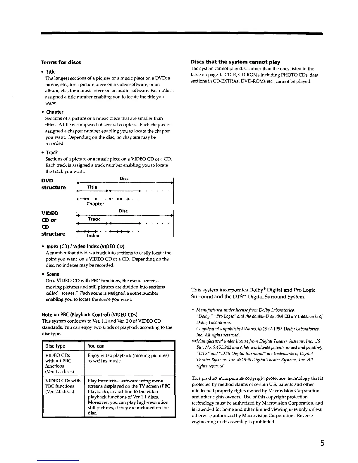 "DTS" and "DTS Digital Surround" are trademarks of Digita!