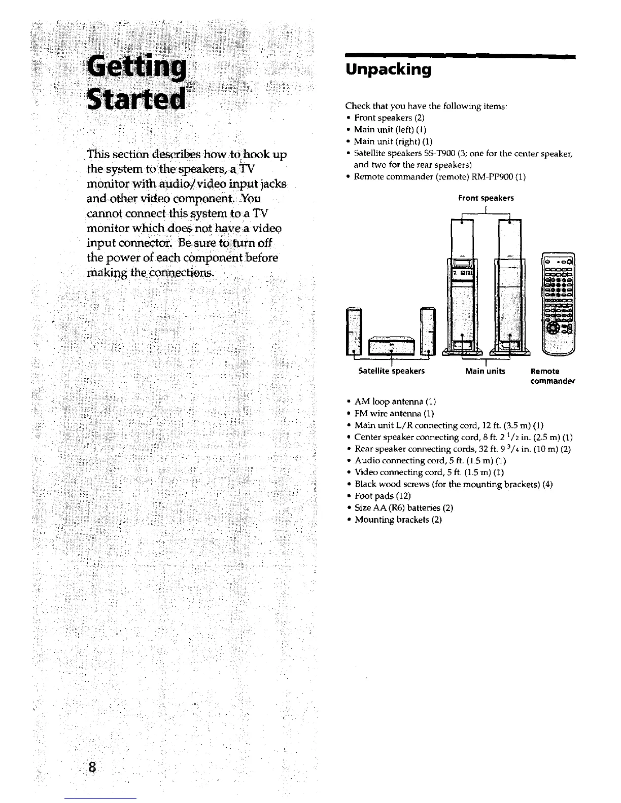 • Center speaker connecting cord, 8 ft. 2 1/2 in. (2.5 m) (1)
