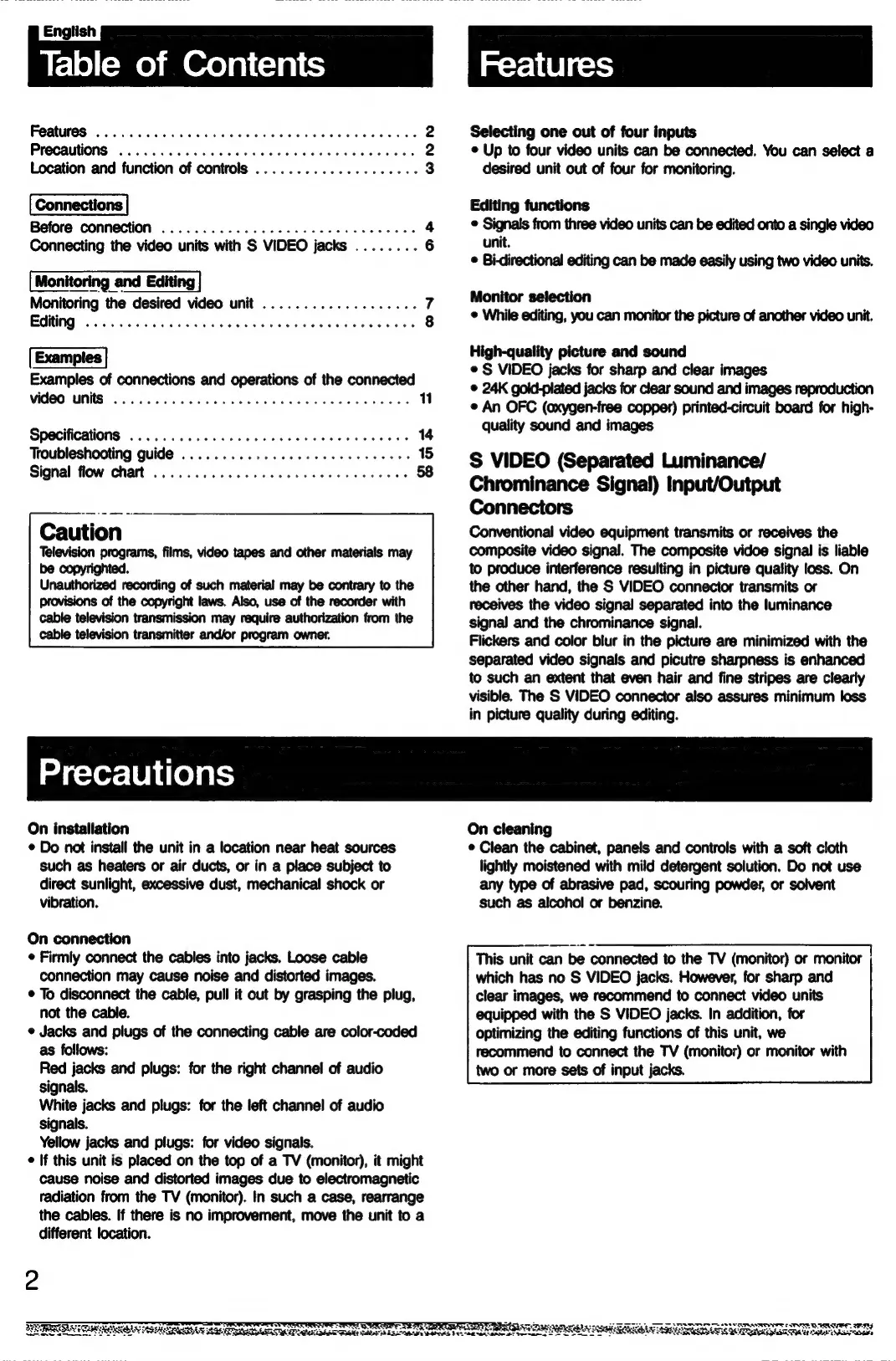 Sony SB-V66S - Product Features; Safety and Usage Precautions; Installation Precautions; Connection Precautions