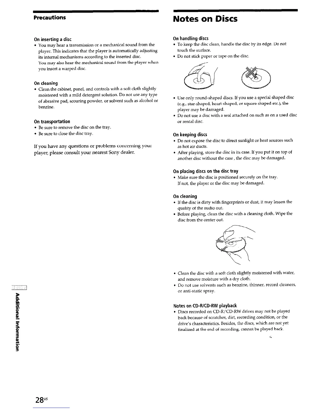 To keep the disc clean, handle the disc by its edge. Do not