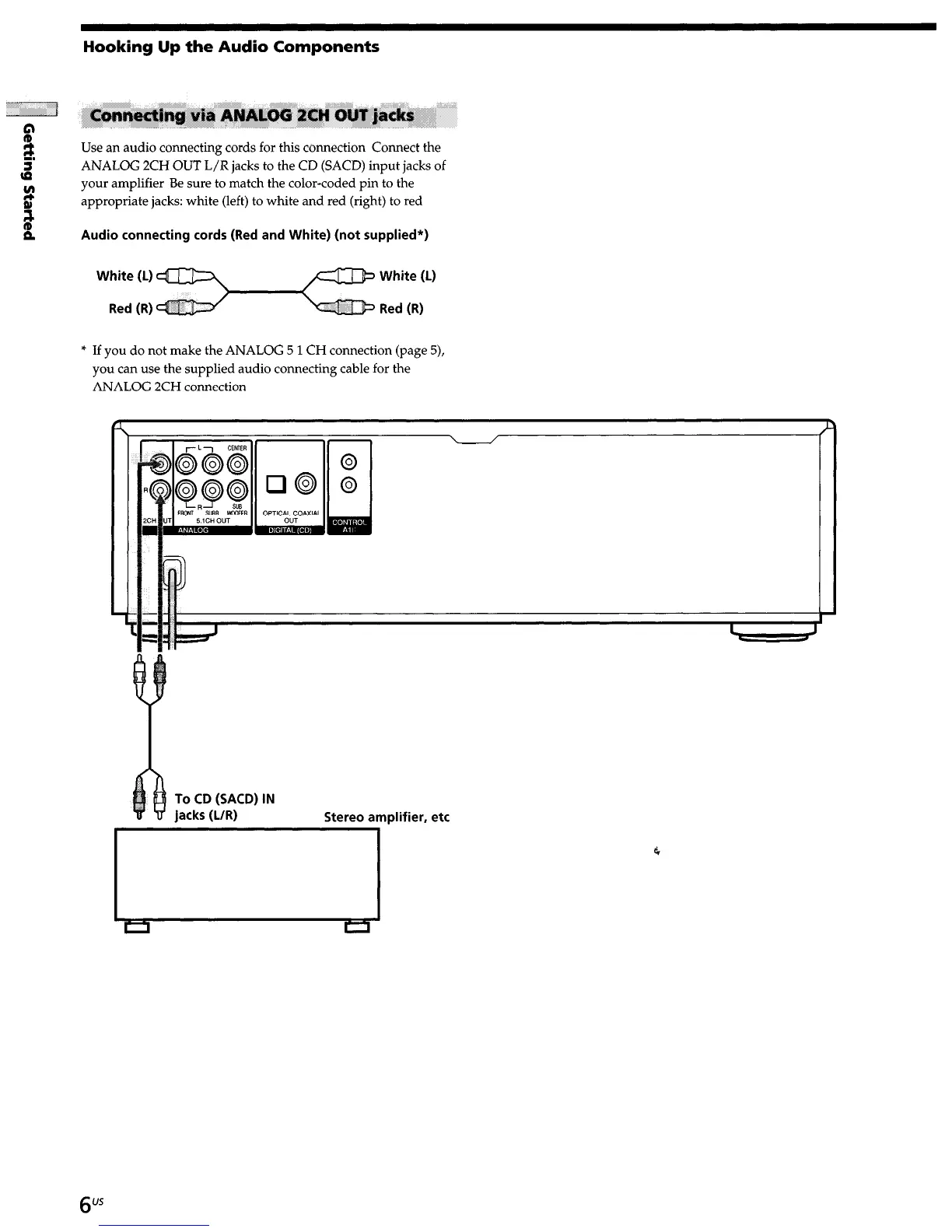 ANALOG 2CH OUT L/R jacks to the CD (SACD) input jacks of