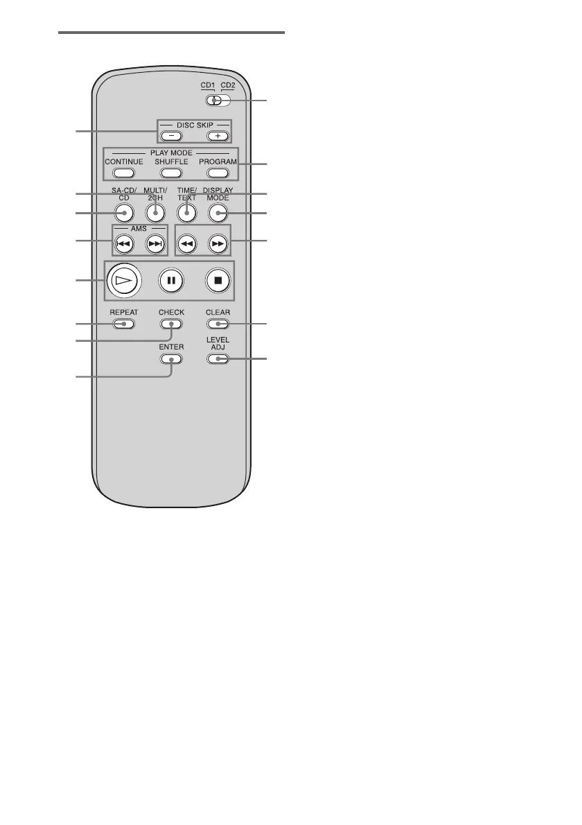 O DISC SKIP +/– buttons (9, 12, 14)