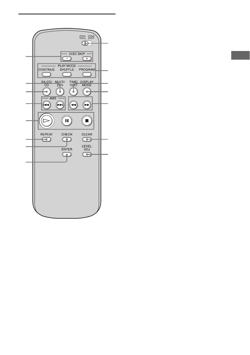 O Botones DISC SKIP +/– (9, 13, 15)