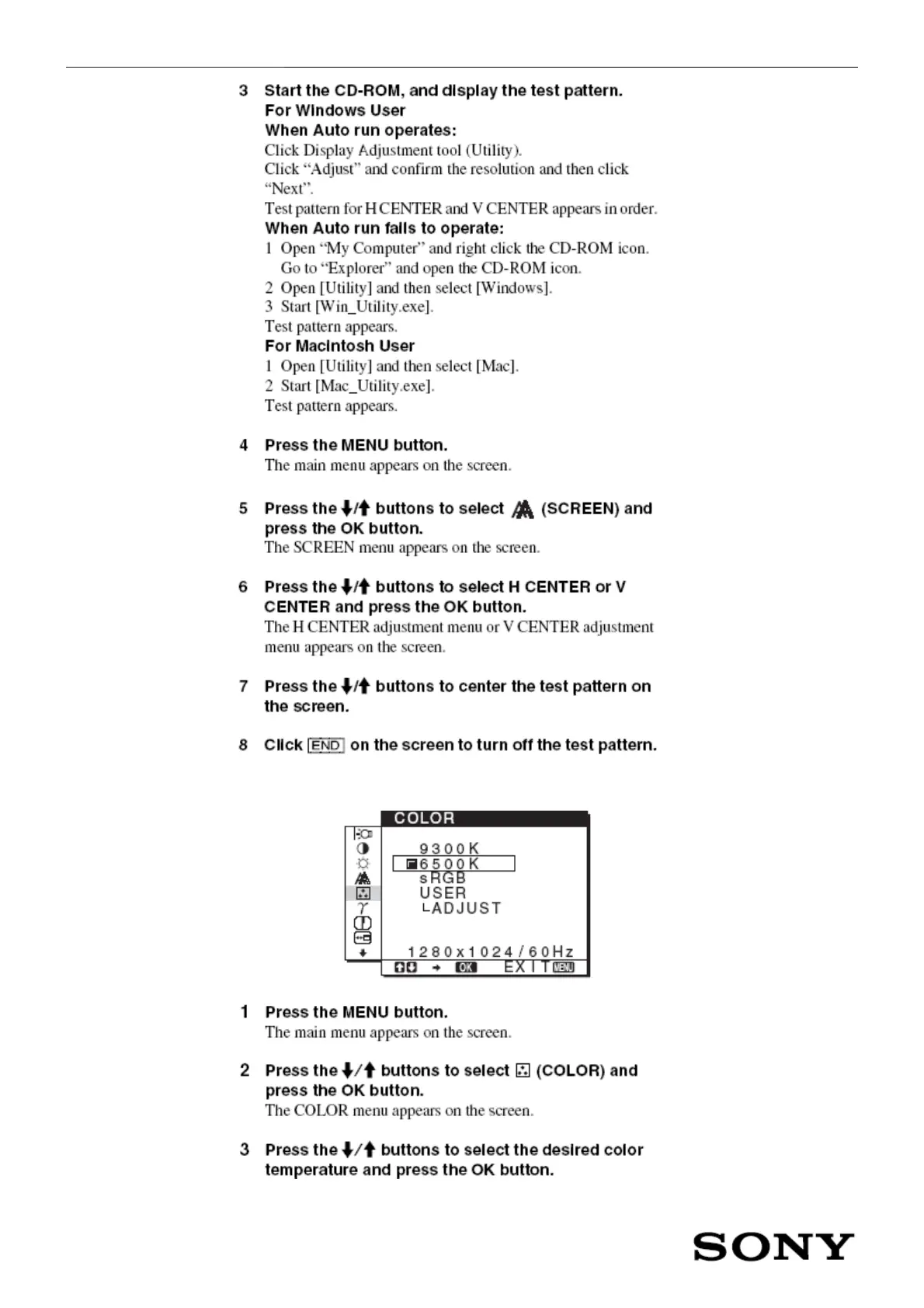 5. Adjusting the color temperature (COLOR)