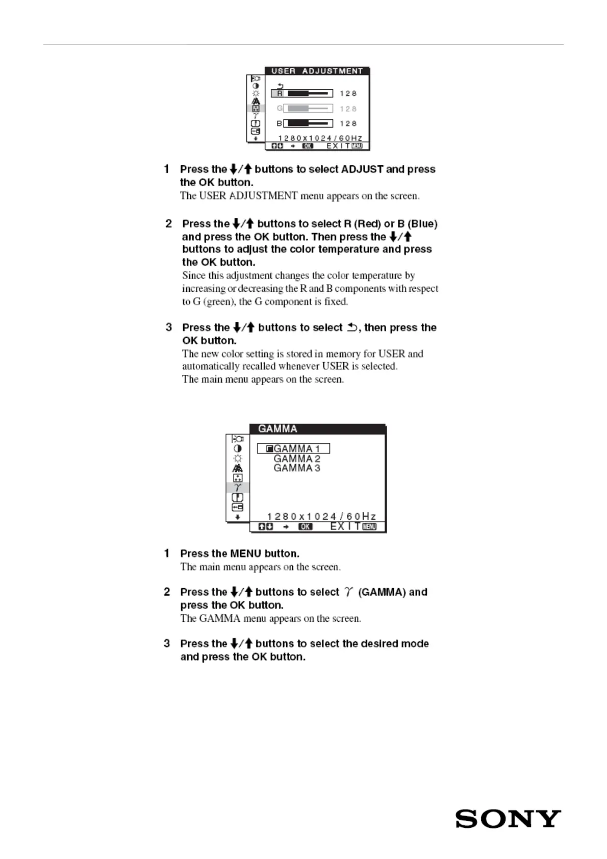 6. Fine tuning the color temperature (USER ADJUSTMENT)
