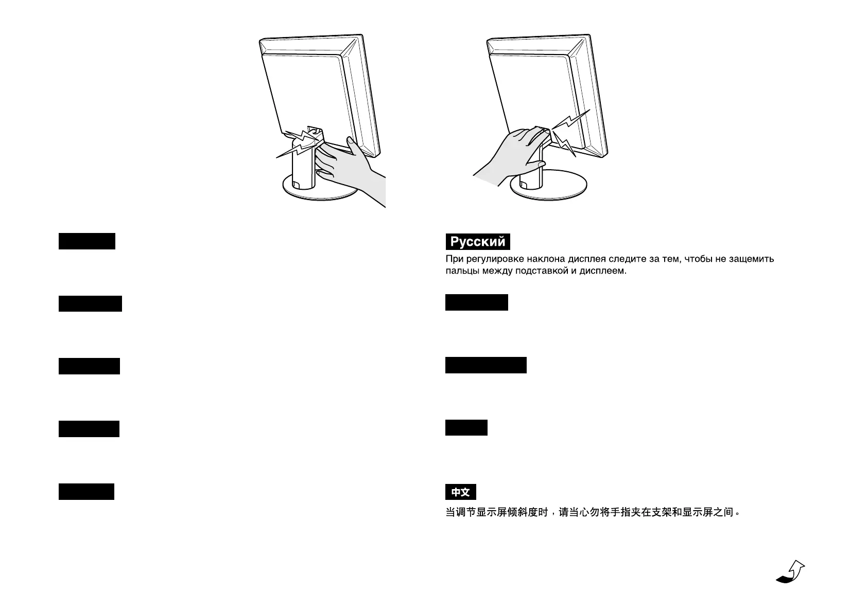 Achten Sie beim Einstellen der Bildschirmneigung darauf, sich nicht die Finger zwischen