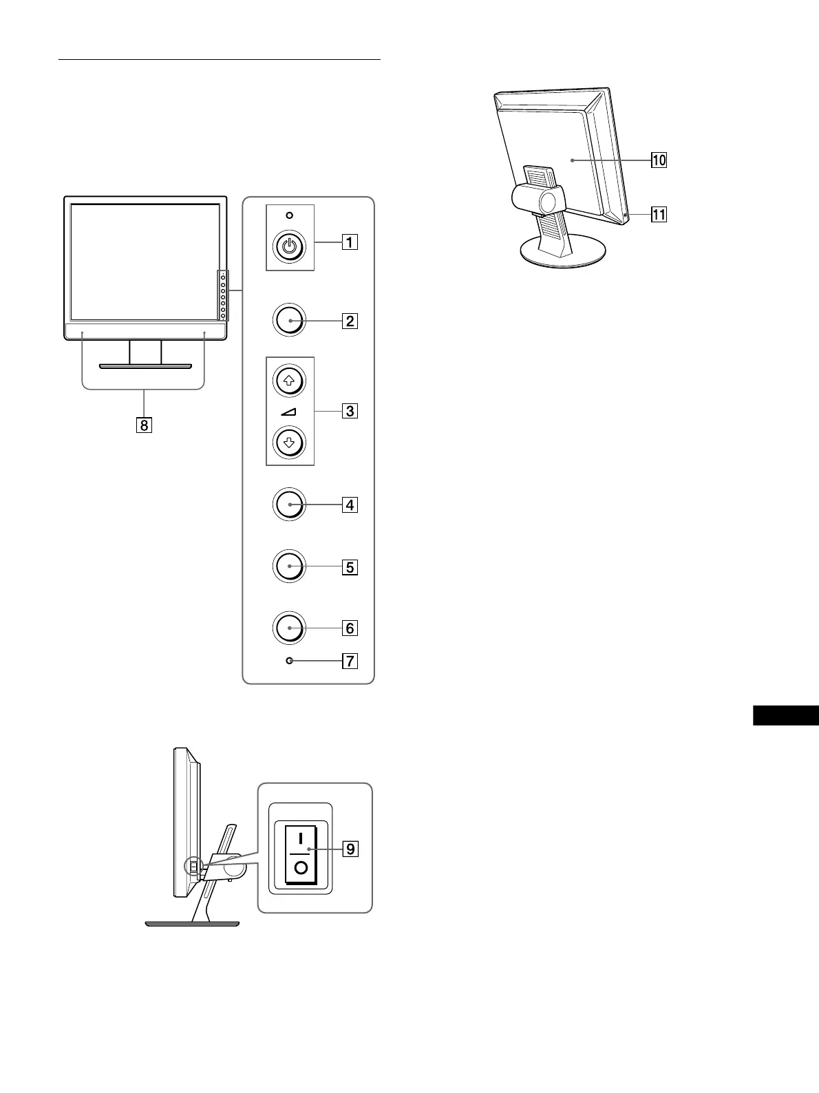 Deze schakelaar zet de monitor aan wanneer de 1 (stroom)