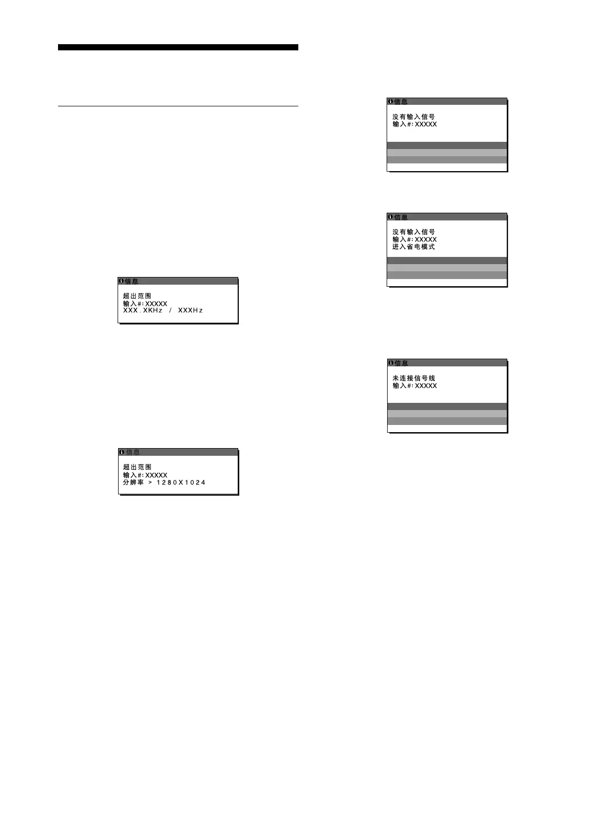 如果输入信号有误,屏幕上会出现下列信息之一。要解决此