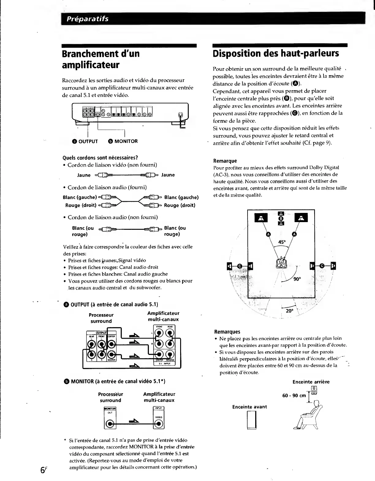 Sony SDP-E800 - Branchement Dun Amplificateur; Disposition des Haut-Parleurs