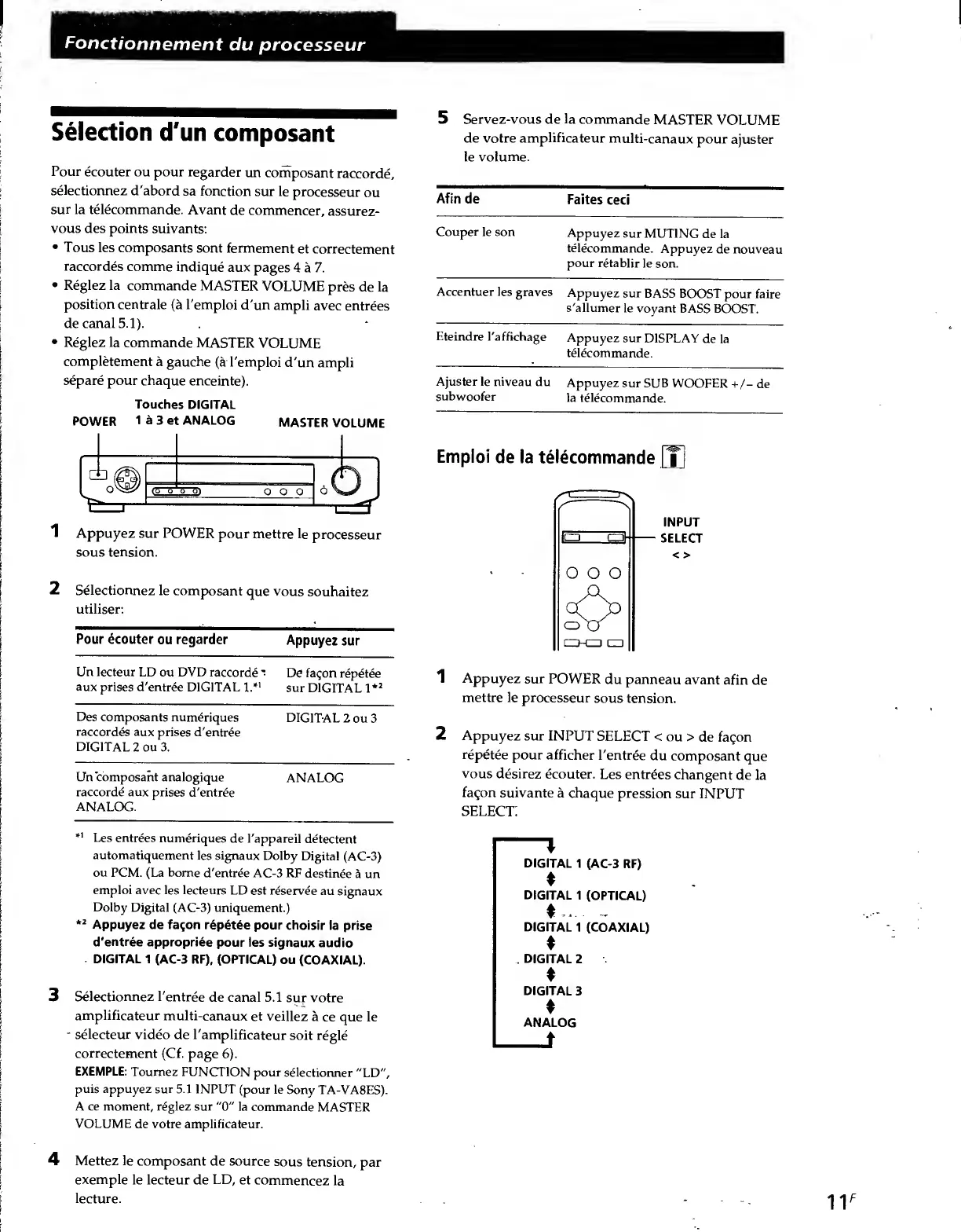 Sony SDP-E800 - Fonctionnement du Processeur; Selection Dun Composant