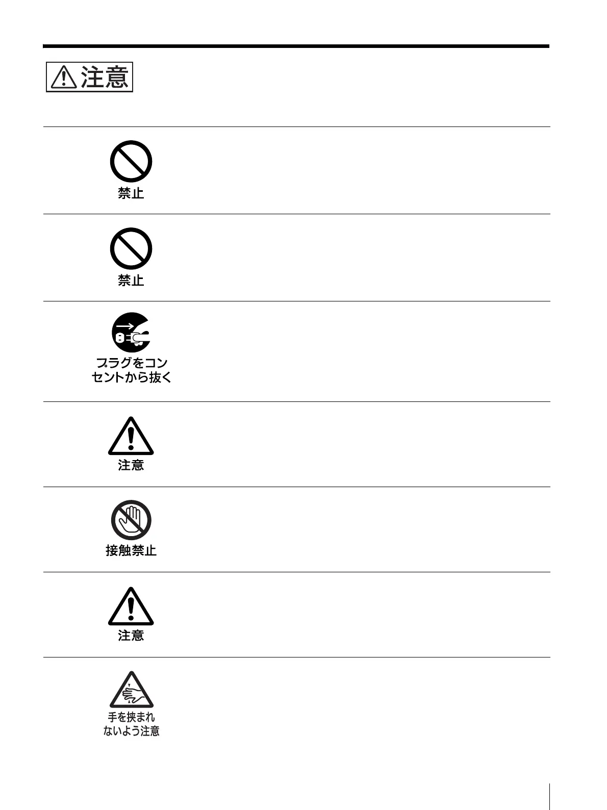 長時間機器を使用しないときは、安全のため必ず電源プラグをコンセントから