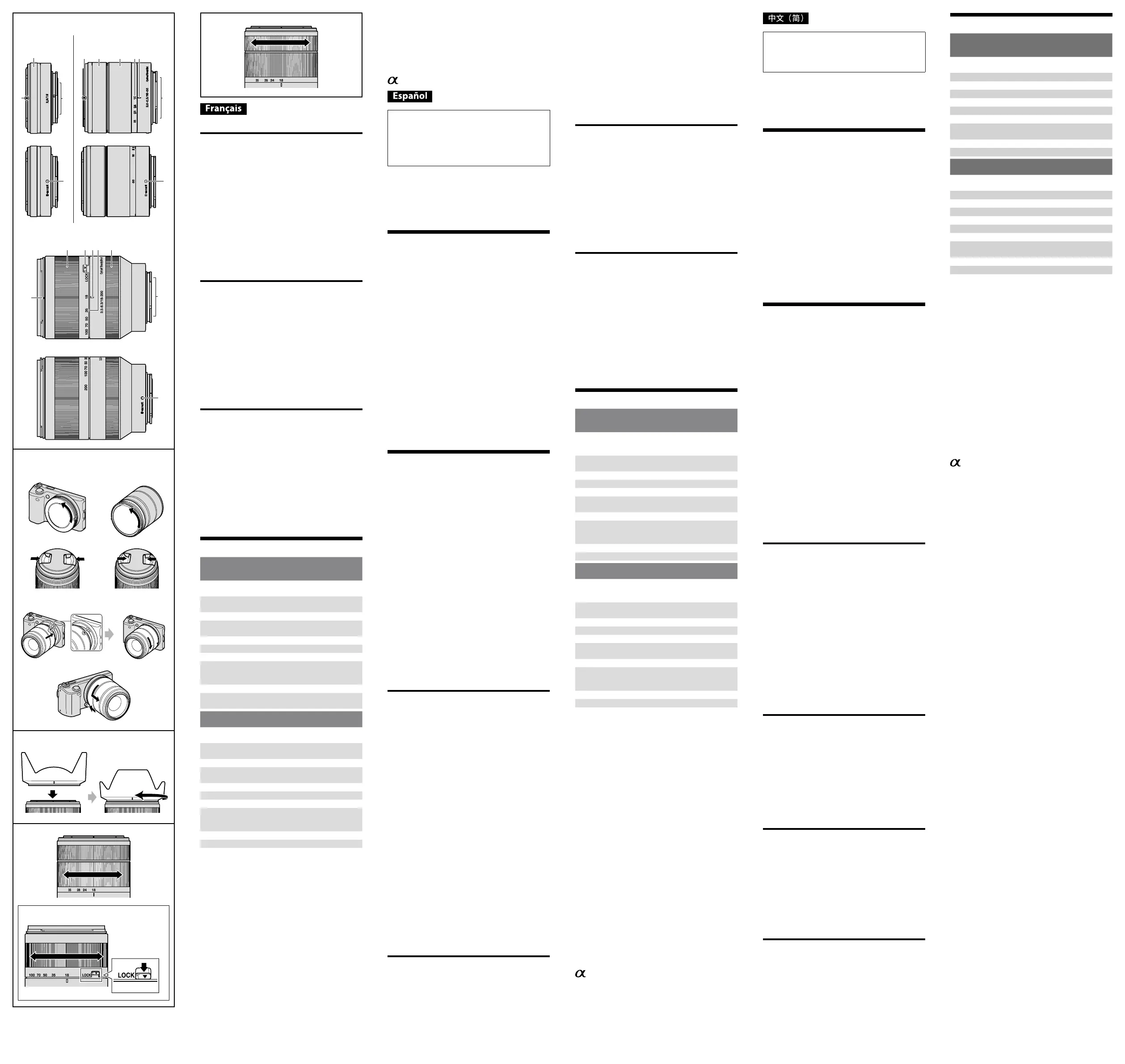 事项”中找到。务必在使用镜头前阅读以上两份文