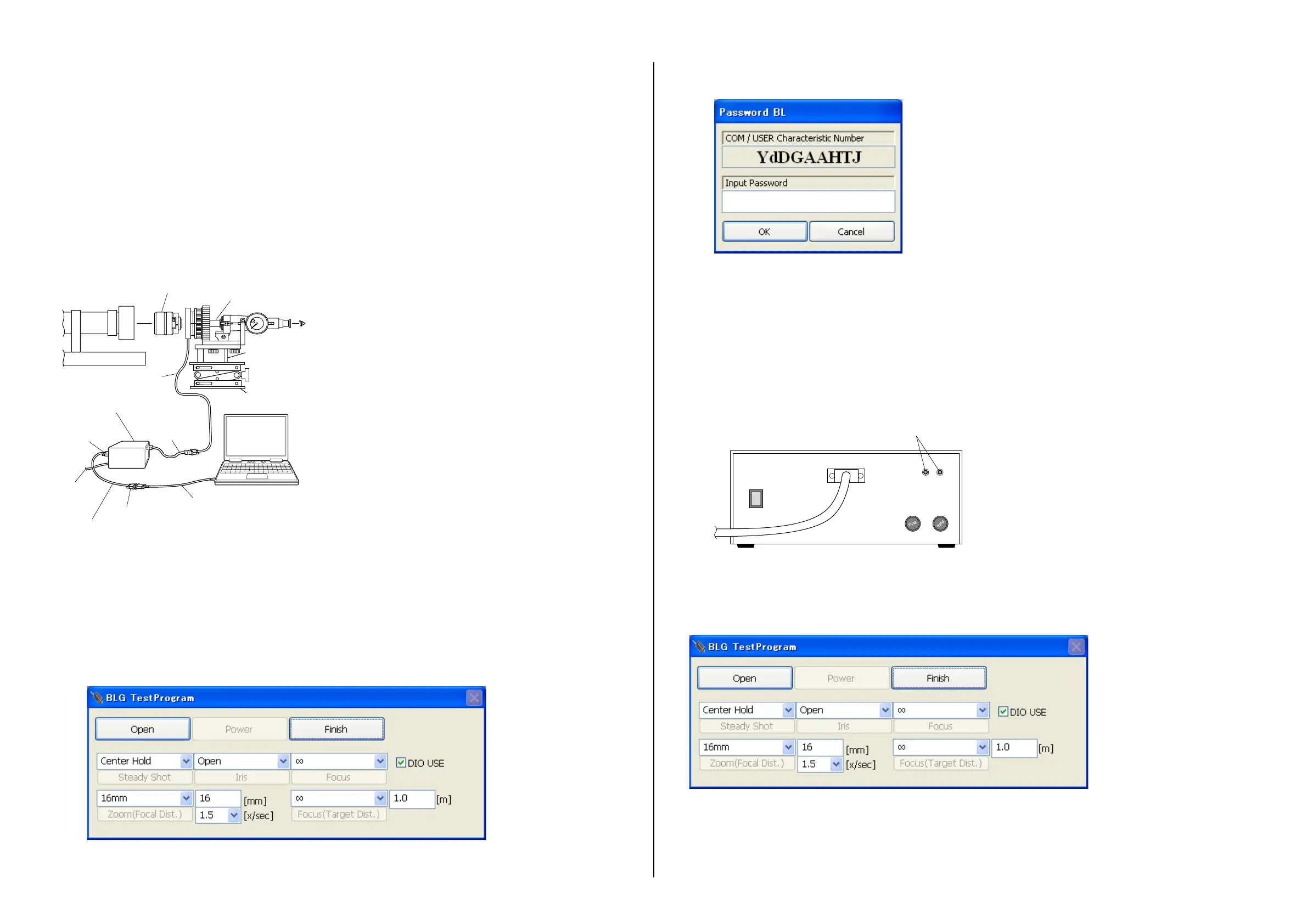 6. Start the lens adjustment program “BLG-TestProgramV[][][].exe”.