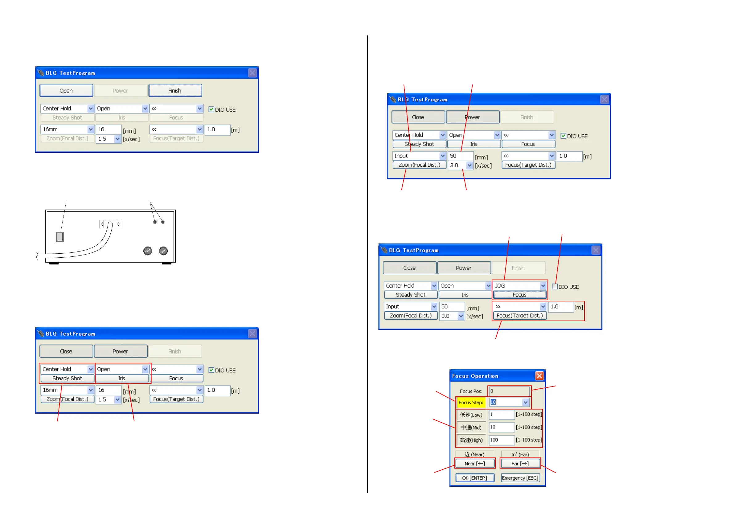 1. Start the lens adjustment program “BLG-TestProgramV[][][].exe”.