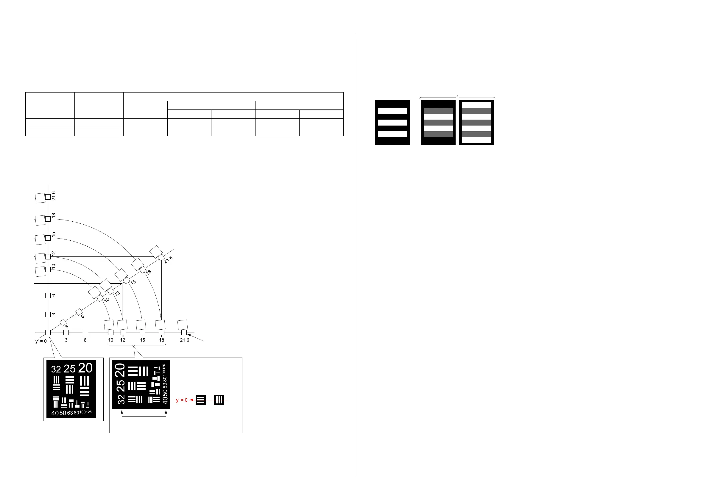 4. Read the value of the number of projective resolving power lines (maximum resolving power) of the center projected image (y’ = 0).