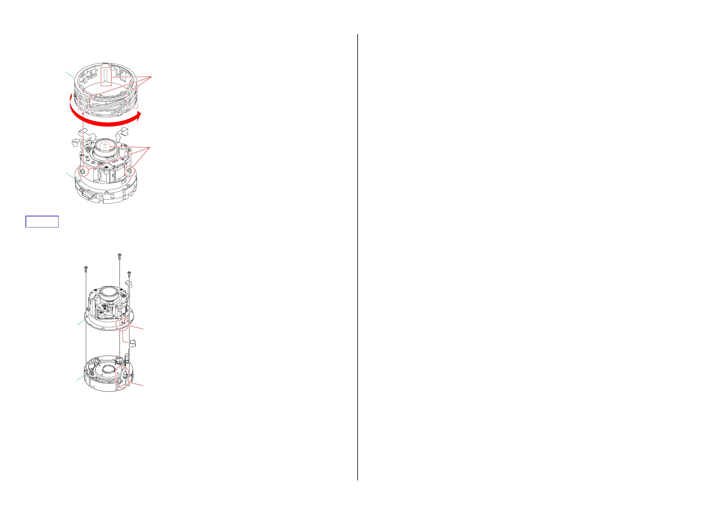 3. 直進溝に2群サーAssyの凸部を合わせて取付ける。3箇所