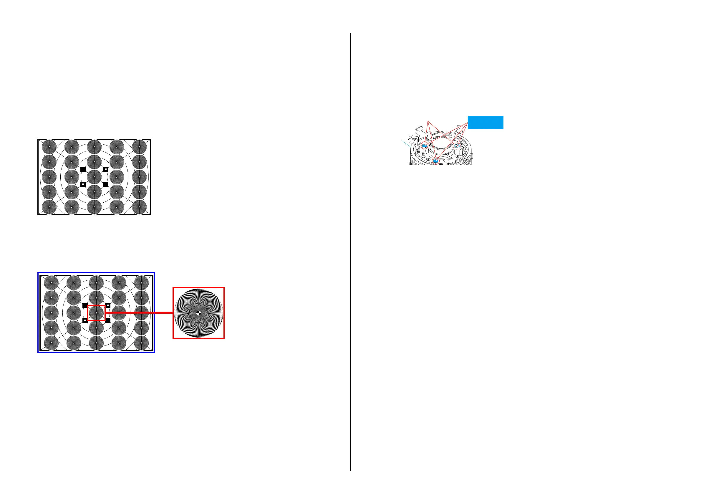注意: 中心のサークルが解像していることを確認し,周辺のサークル(24個)は上下左右が均等に解像していることを確認してください。