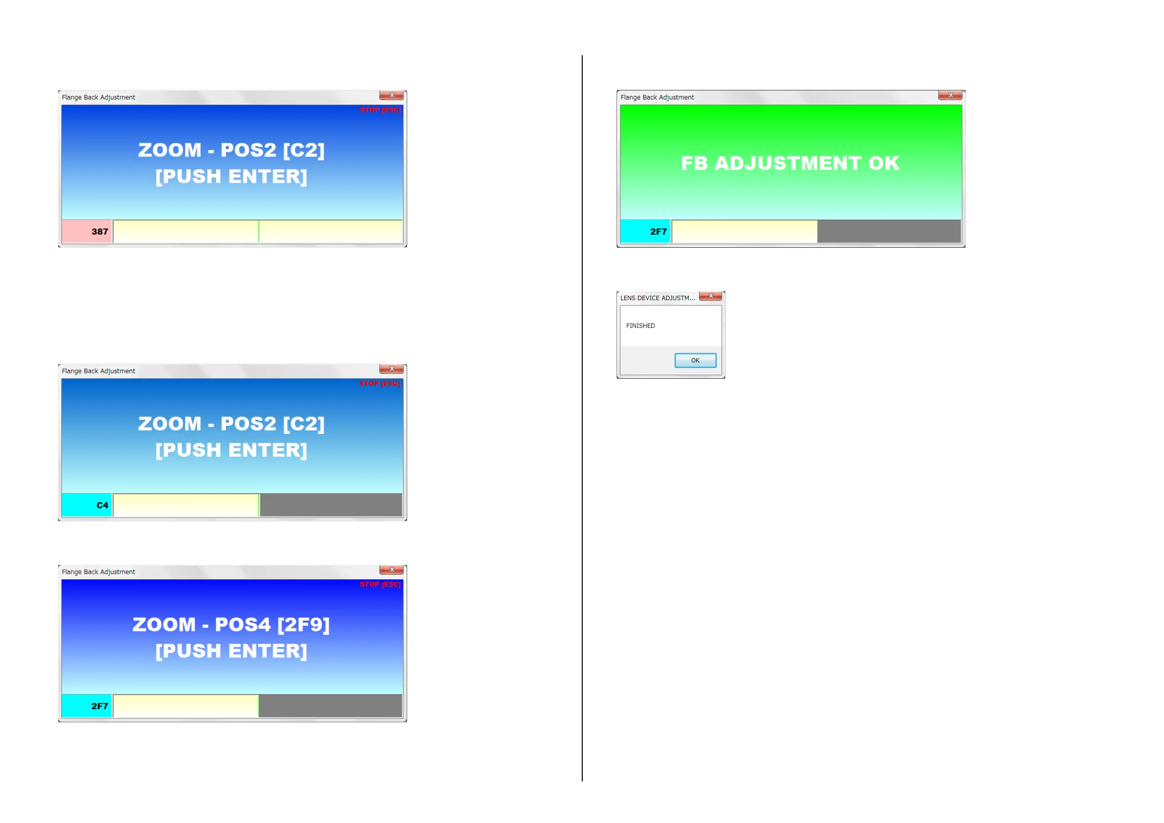 9. 調整が完了すると“FBADJUSTMENTOK”と表示される。