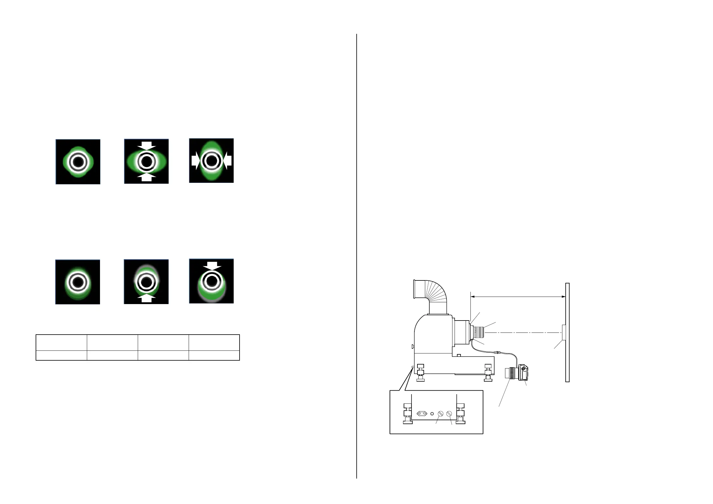 (1) チャート端の二点(ほぼ対称の位置)におけるフレアーが最も少なくなる位置(下図(b)矢印)でダイヤルを止めて,ダイヤ