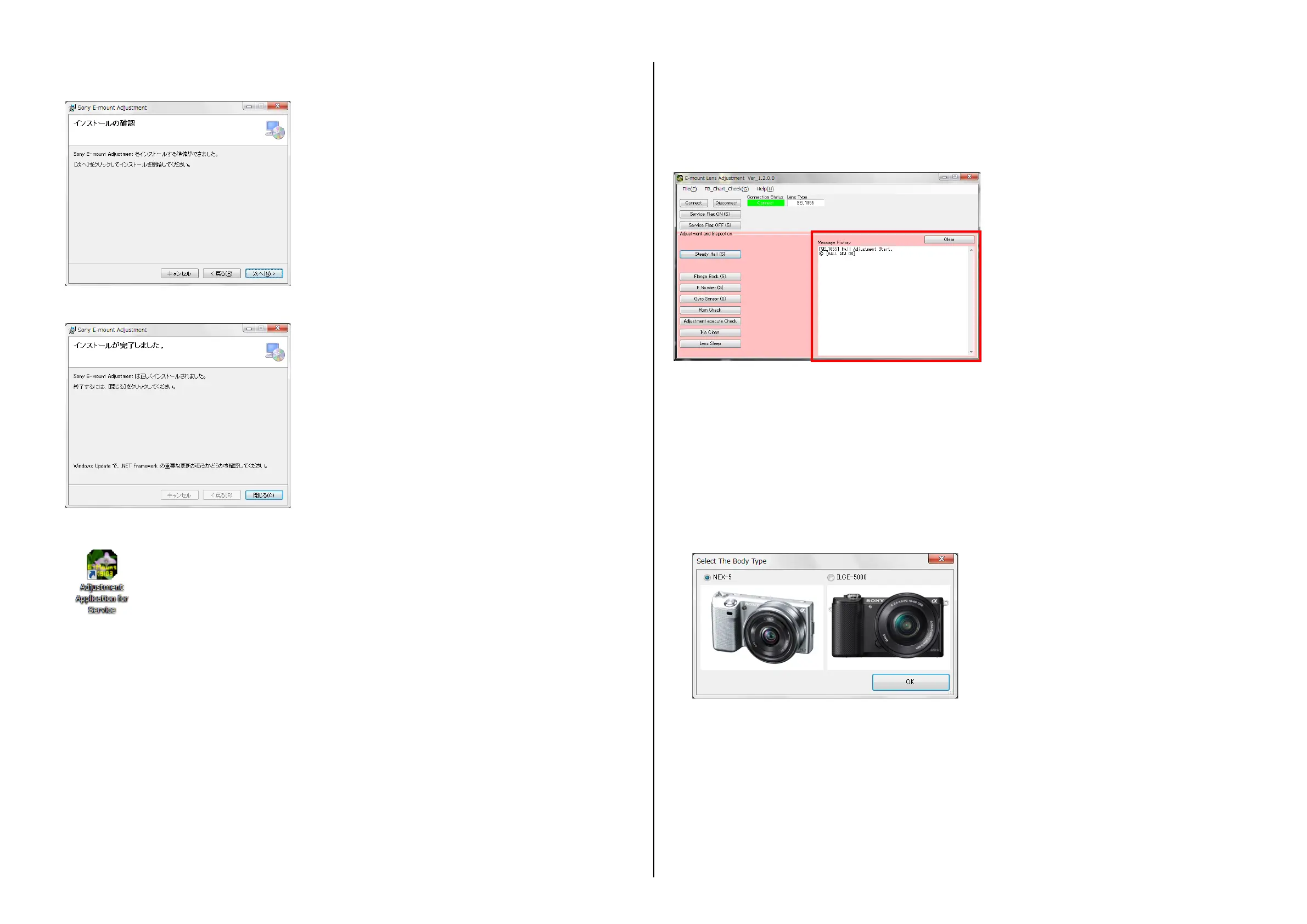 7. デスクトップにE-MountLensAdjustment(AdjustmentApplicationforService)のショートカットアイコンが作成される。