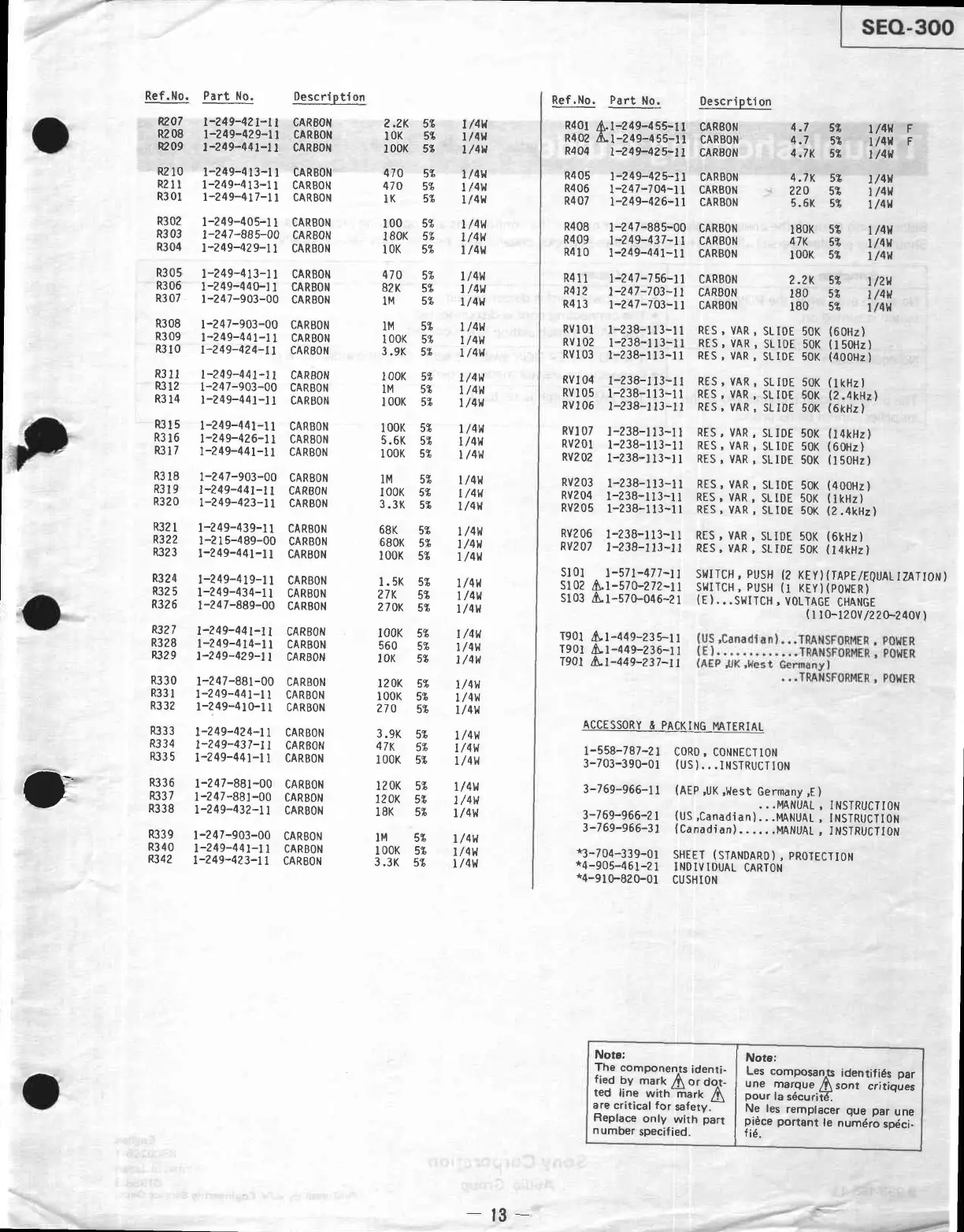 Sony SEQ-300 - Critical Component Identification (Accessories)