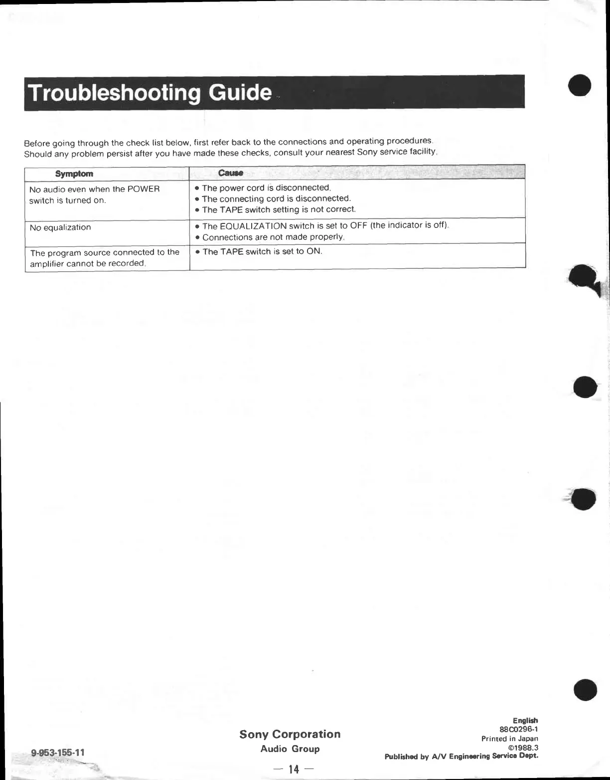 Sony SEQ-300 - Troubleshooting Guide; Common Troubleshooting Scenarios