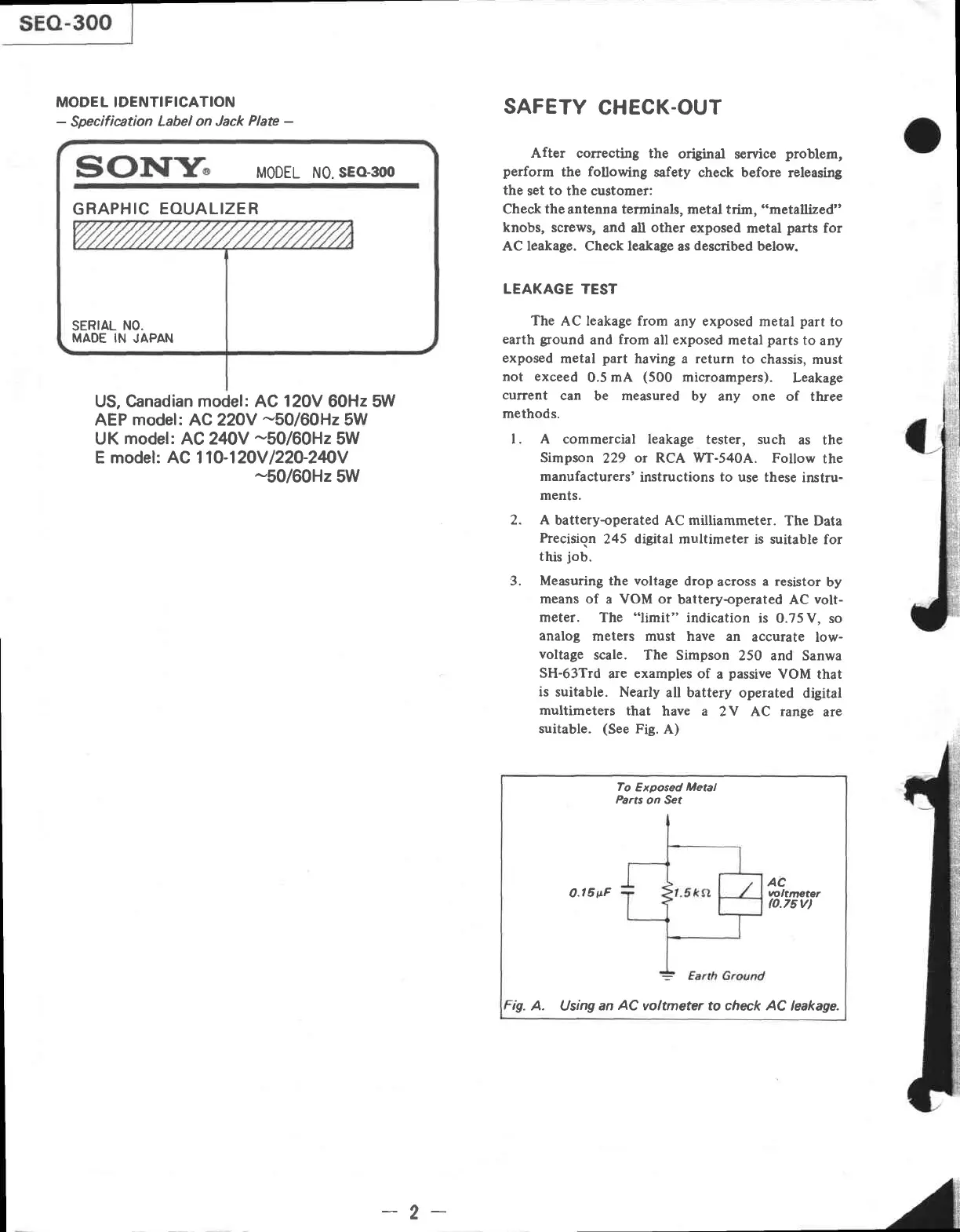 Sony SEQ-300 - Safety Check-Out; Leakage Test Procedure