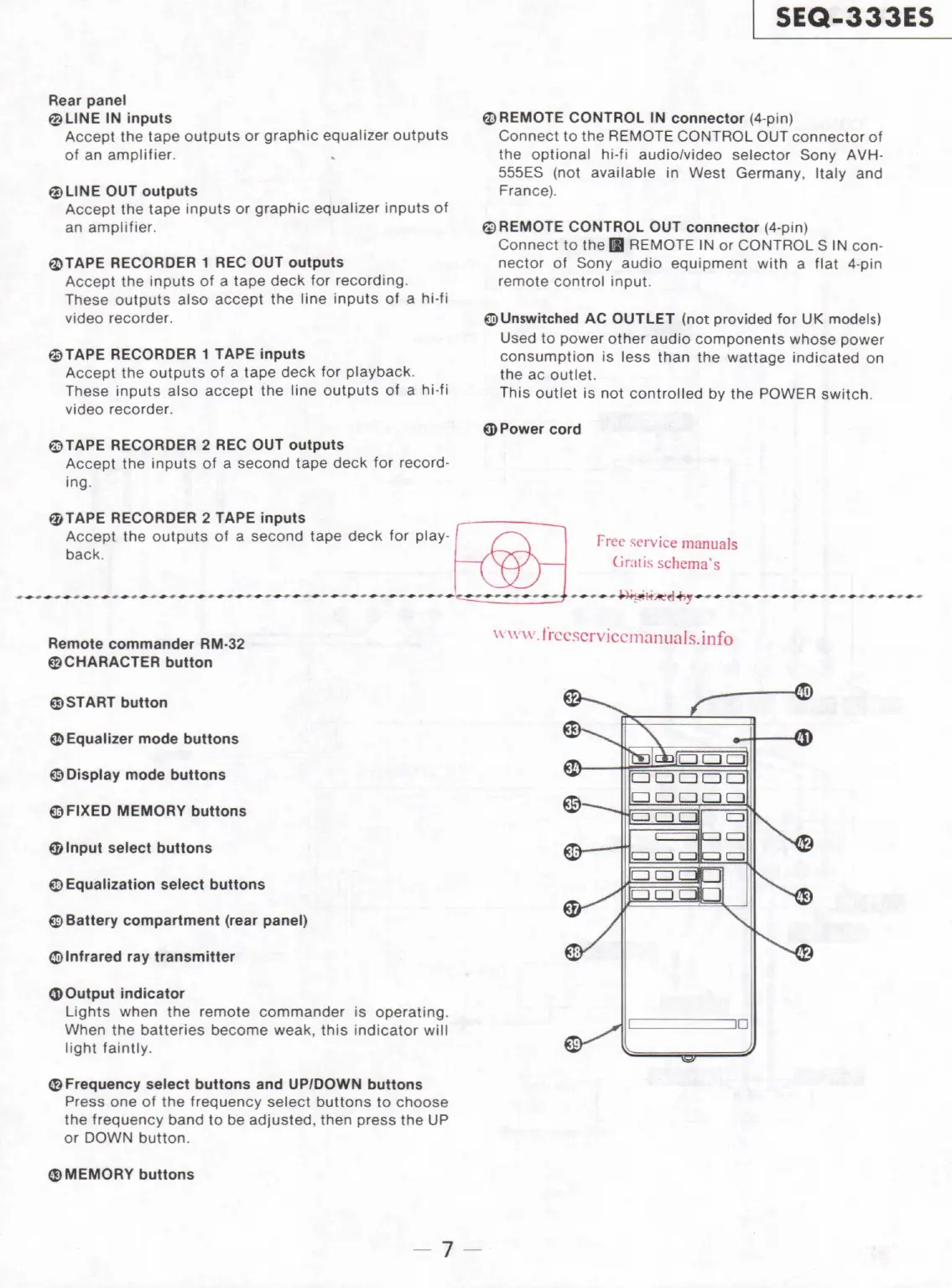 Sony SEQ-333ES - REAR PANEL CONNECTORS; Input and Output Jacks; Remote Control Connectors; AC Outlet and Power Cord