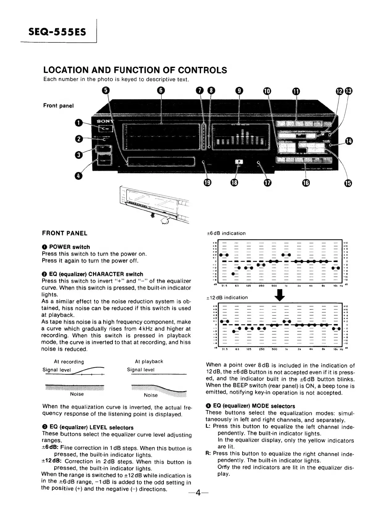 Sony SEQ-555ES - Location and Function of Controls; Front Panel