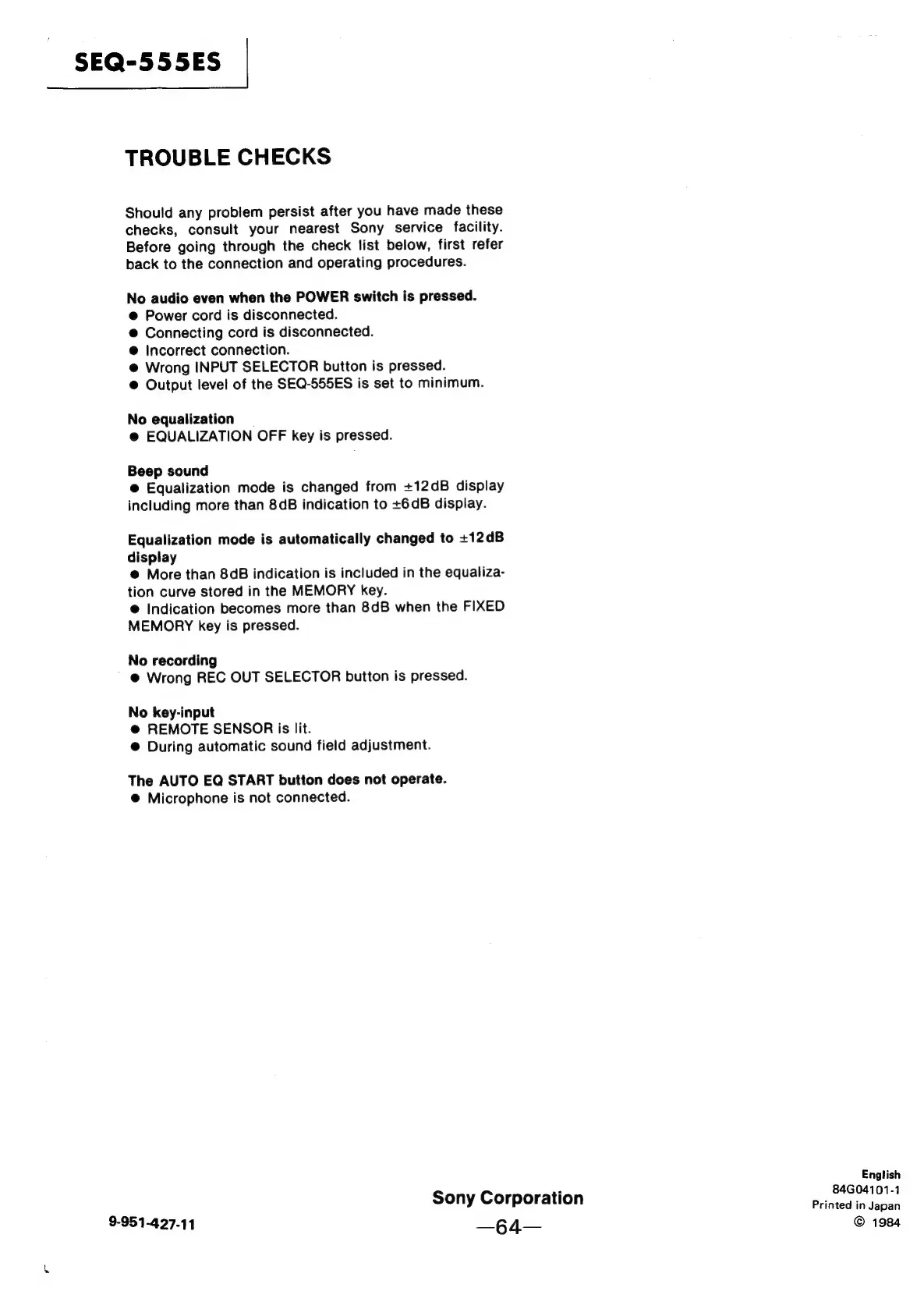 Sony SEQ-555ES - Trouble Checks