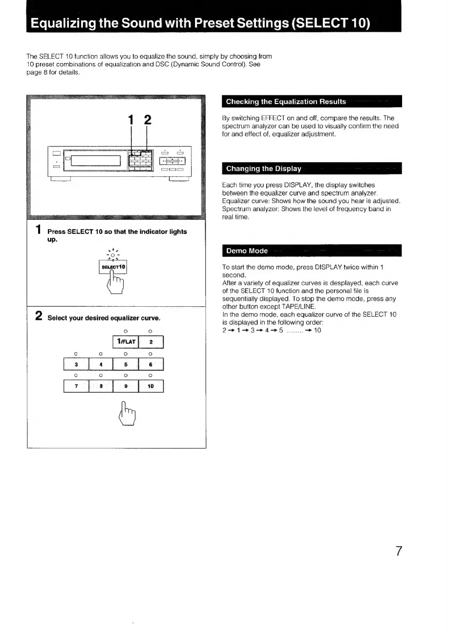 Sony SEQ-711 - Equalizing the Sound with Preset Settings (SELECT 10)