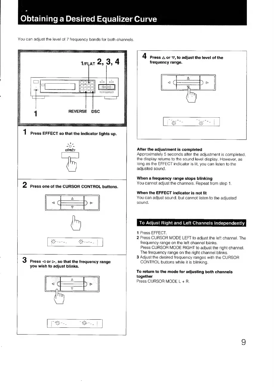 Sony SEQ-711 - Obtaining a Desired Equalizer Curve; To Adjust Right and Left Channels Independently