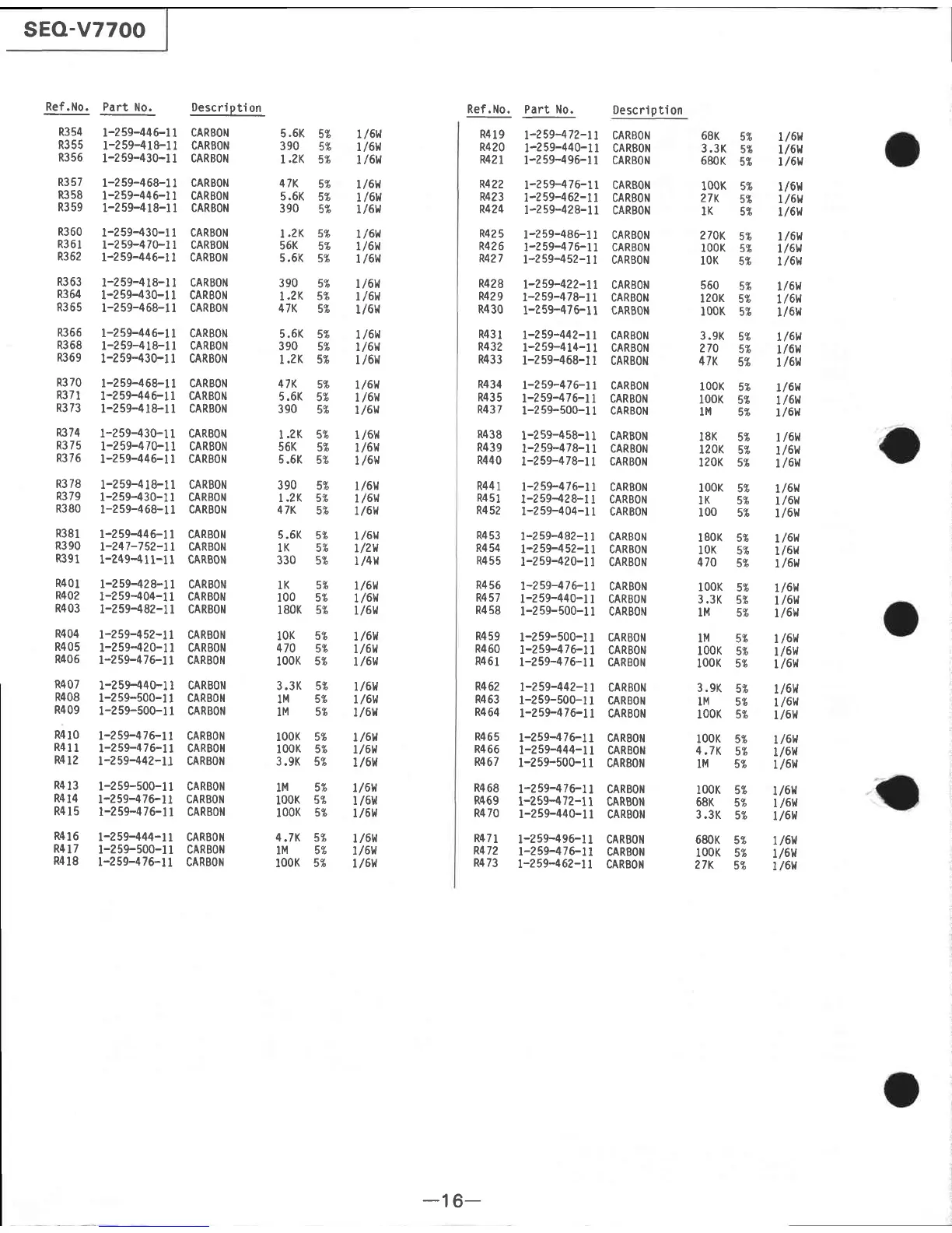Sony SEQ-V7700 - Electrical Parts List: Resistors (Part 2); Resistor Specifications Continuation