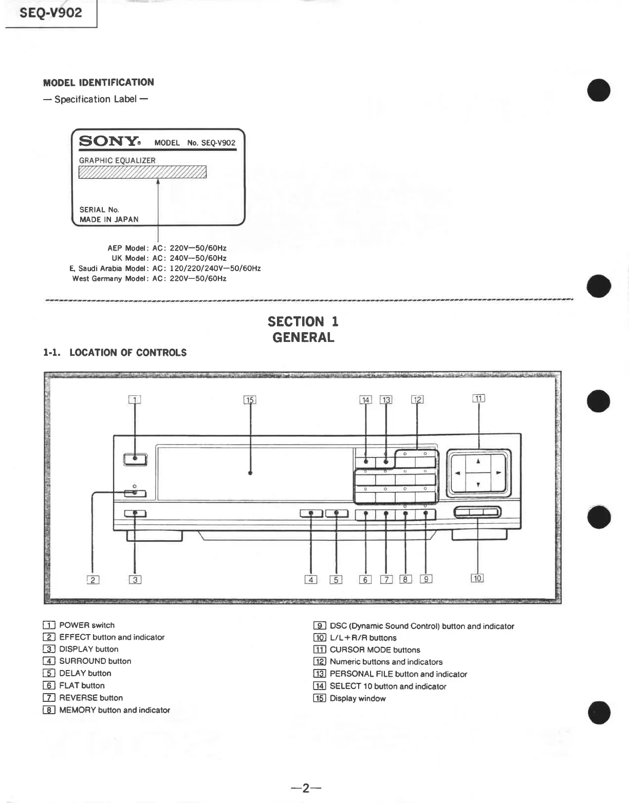 Sony SEQ-V902 - SECTION 1 GENERAL; LOCATION OF CONTROLS