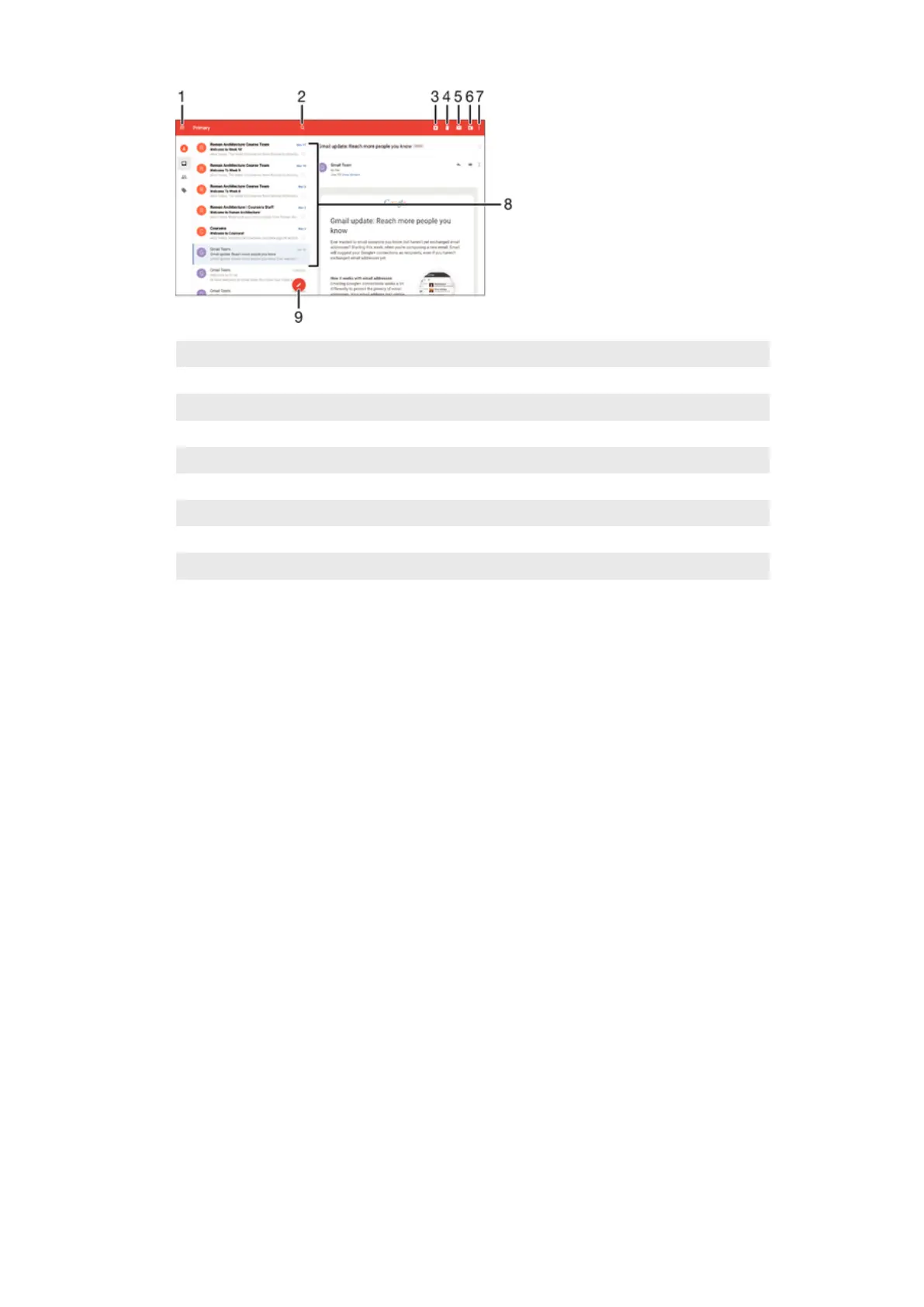 When the Gmail application is open, drag the left edge of the screen to the right,