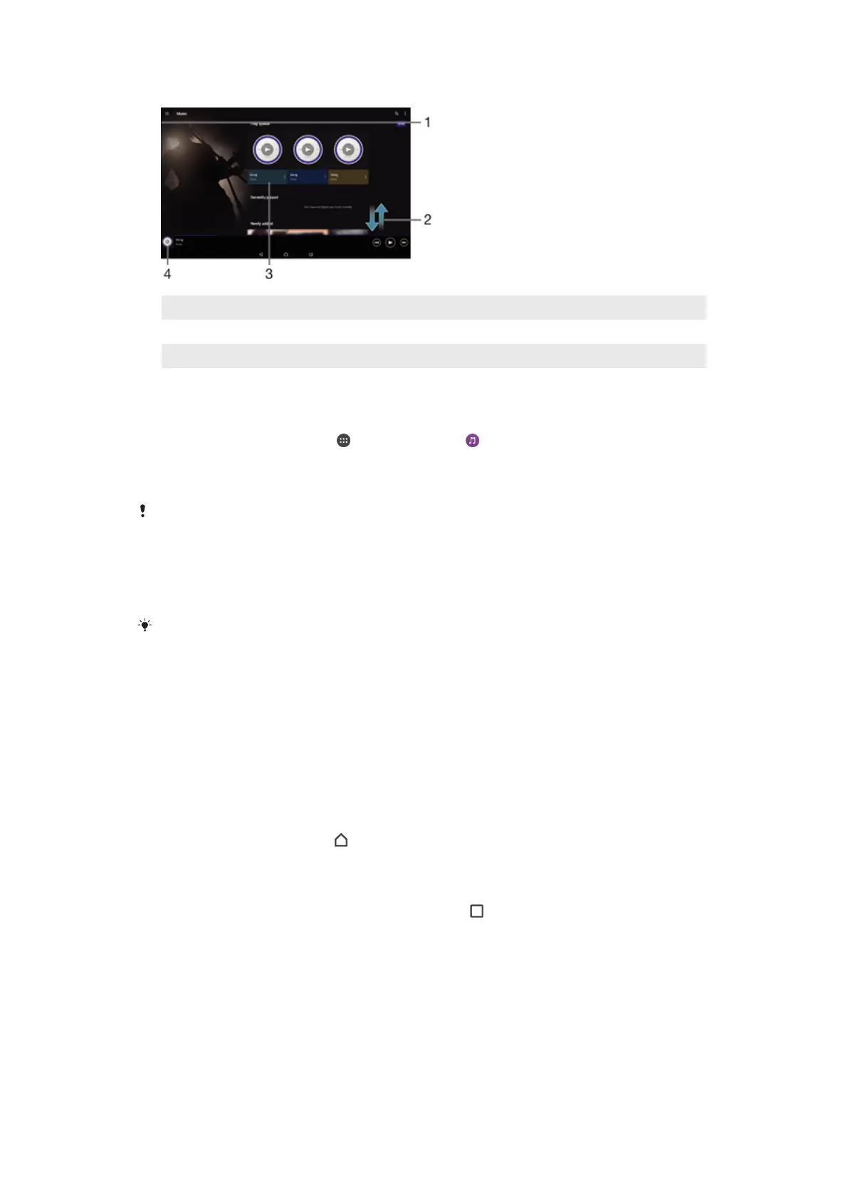1 Drag the left edge of the screen to the right to open the Music homescreen menu