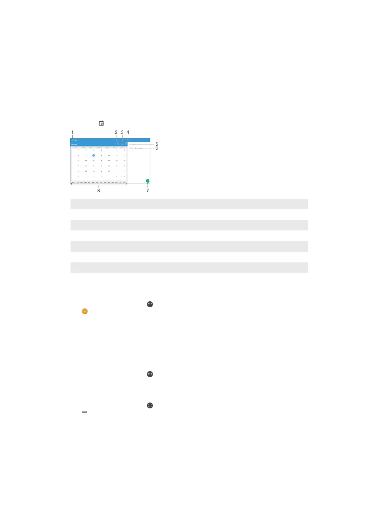 example, your Google™ account or Xperia™ with Facebook account, then calendar