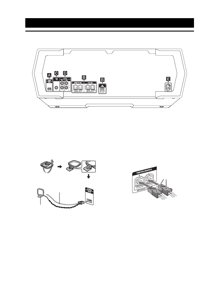 • When connecting speaker cords, insert the