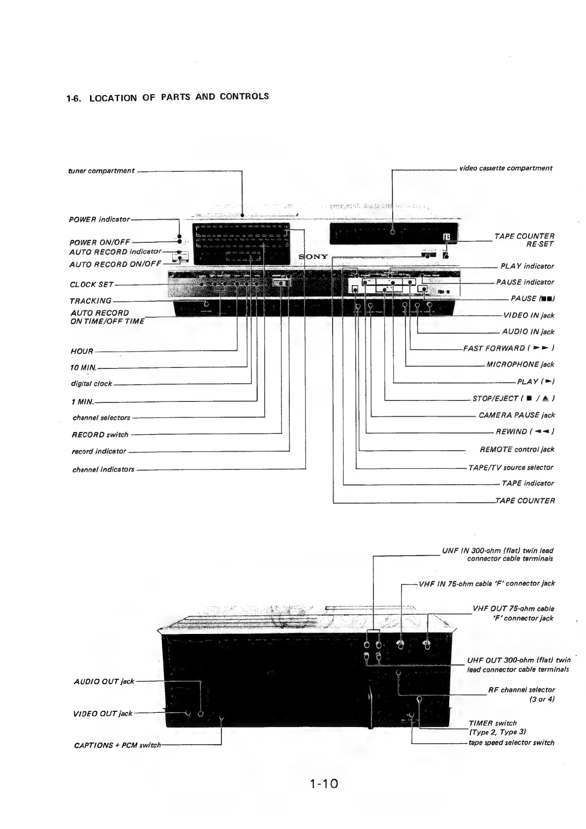 Sony SL-5000 - 1-6. Parts and Controls Location; Front Panel Controls Overview; Rear Panel Connectors Overview