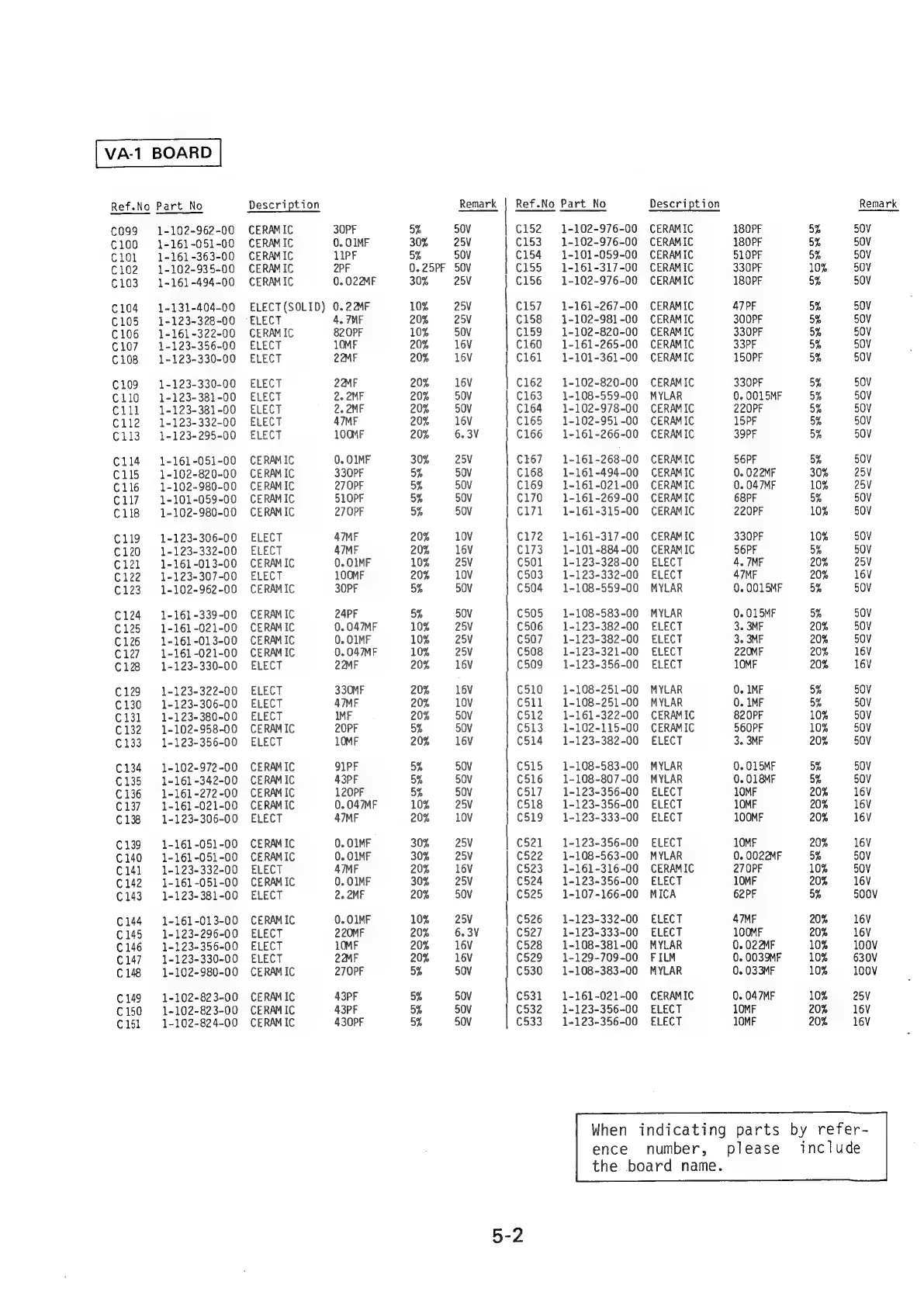 Sony SL-5000 - VA-1 Board Component List (Continued)