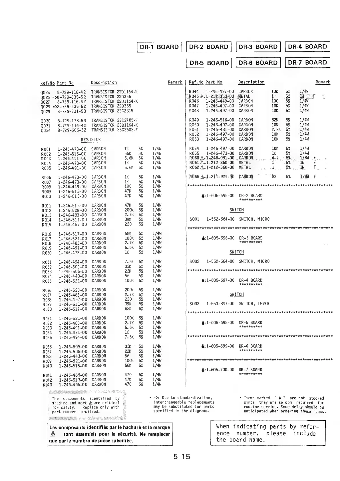 Sony SL-5000 - DR-1 to DR-7 Board Component Lists