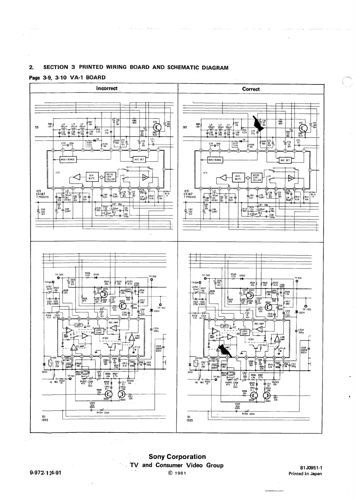 Sony SL-5000 - Section 3 Printed Wiring Board and Schematic Diagram Corrections; Page 3-9, 3-10 VA-1 Board Corrections