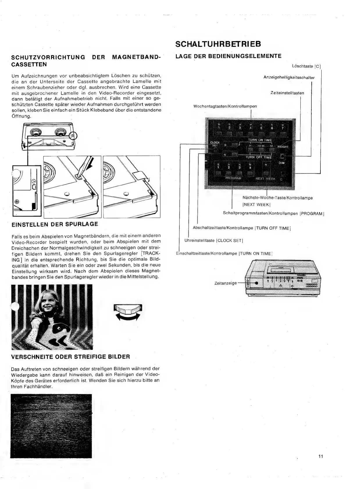 Sony SL-C7E - Schutzvorrichtung der Magnetband-Cassetten; Einstellen der Spurlage; Verschneite oder Streifige Bilder