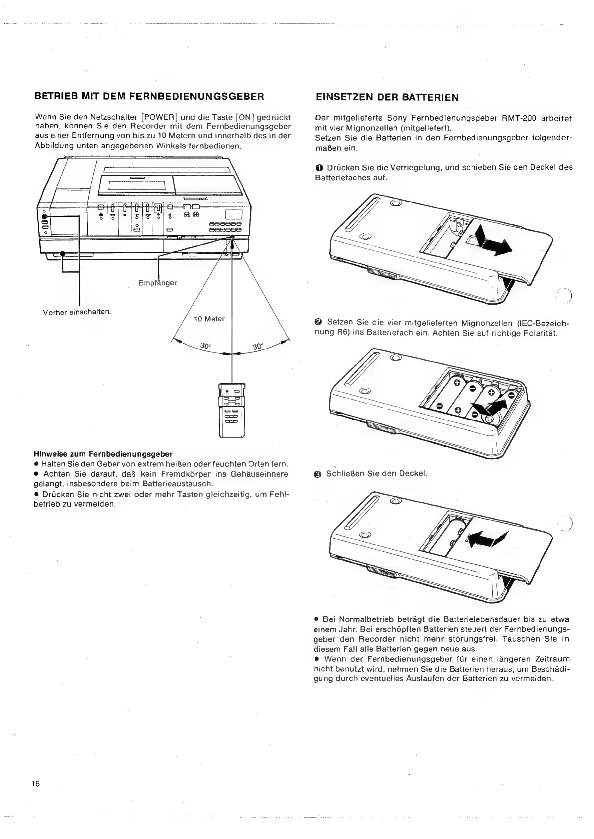 Sony SL-C7E - Betrieb mit dem Fernbedienungsgeber; Einsetzen der Batterien 2.0.00; Eee Ees