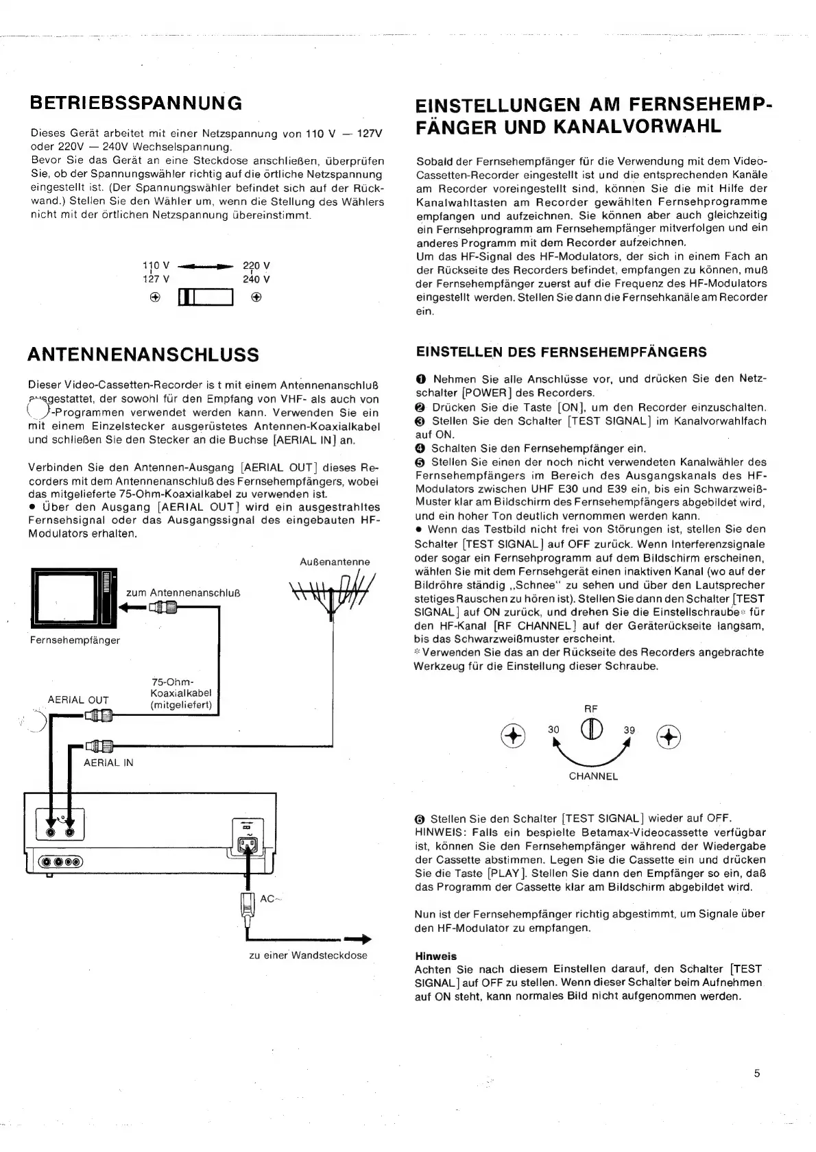 Sony SL-C7E - Betriebsspannung; Einstellungen am Fernsehempfanger; Einstellen des Fernsehempfangers