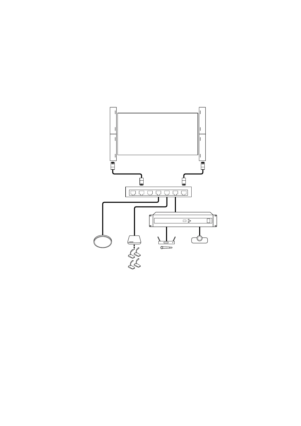 Raccordez les enceintes à des périphériques audio compatibles avec Dante à l’aide de câbles Ethernet. Par le biais